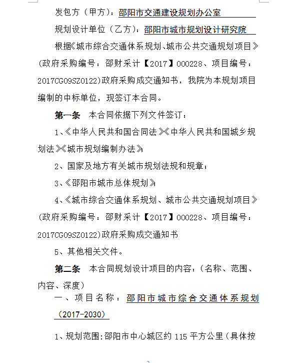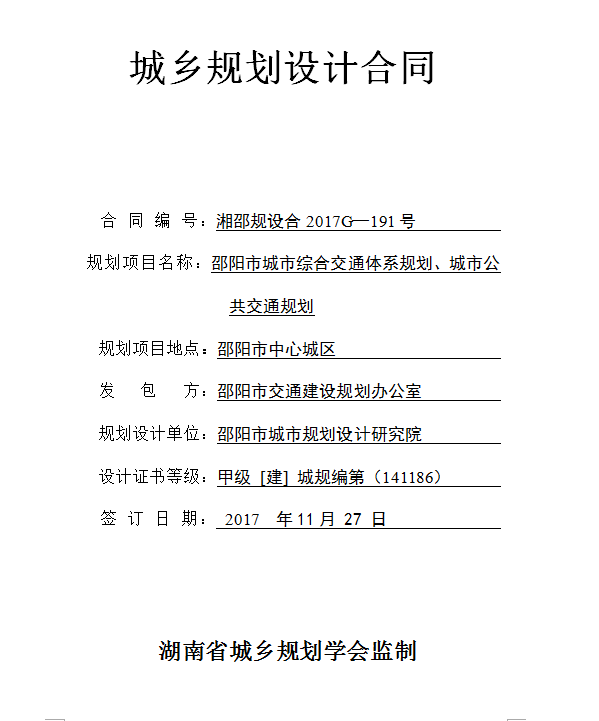 邵陽(yáng)市城市綜合交通體系規(guī)劃、城市公共交通規(guī)劃合同公示