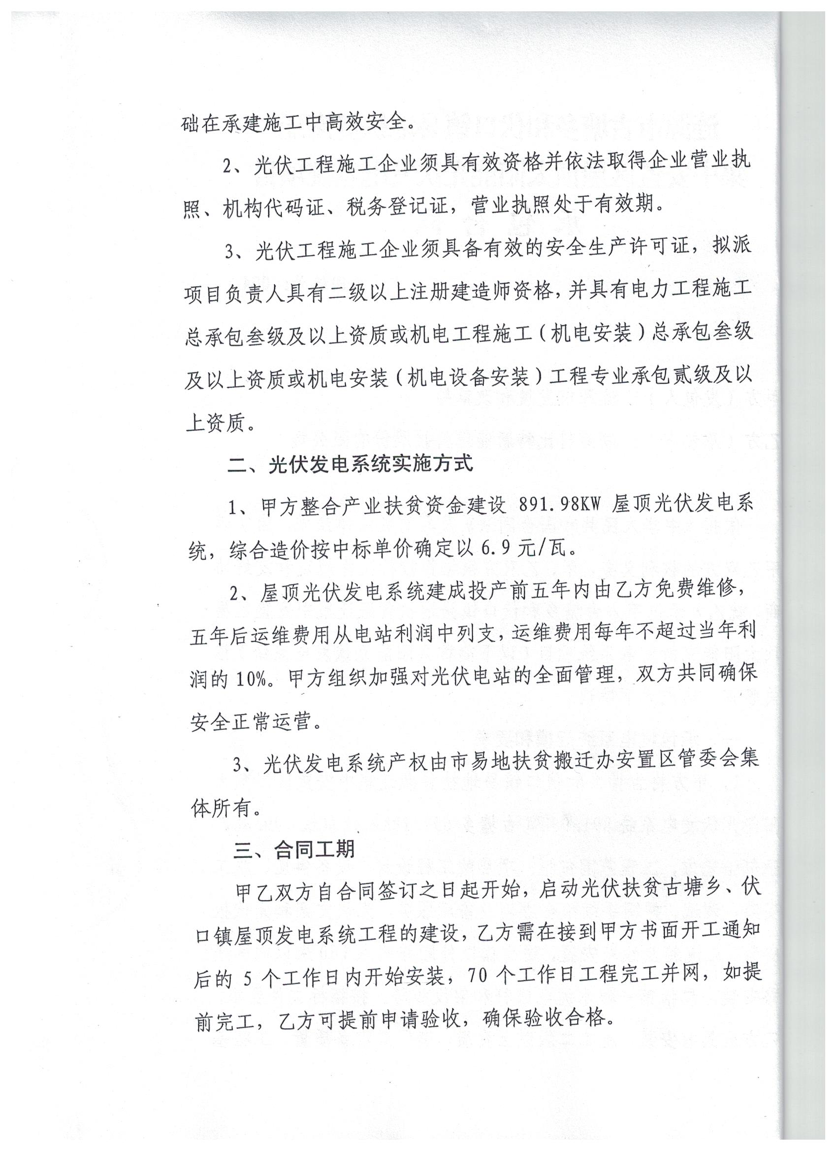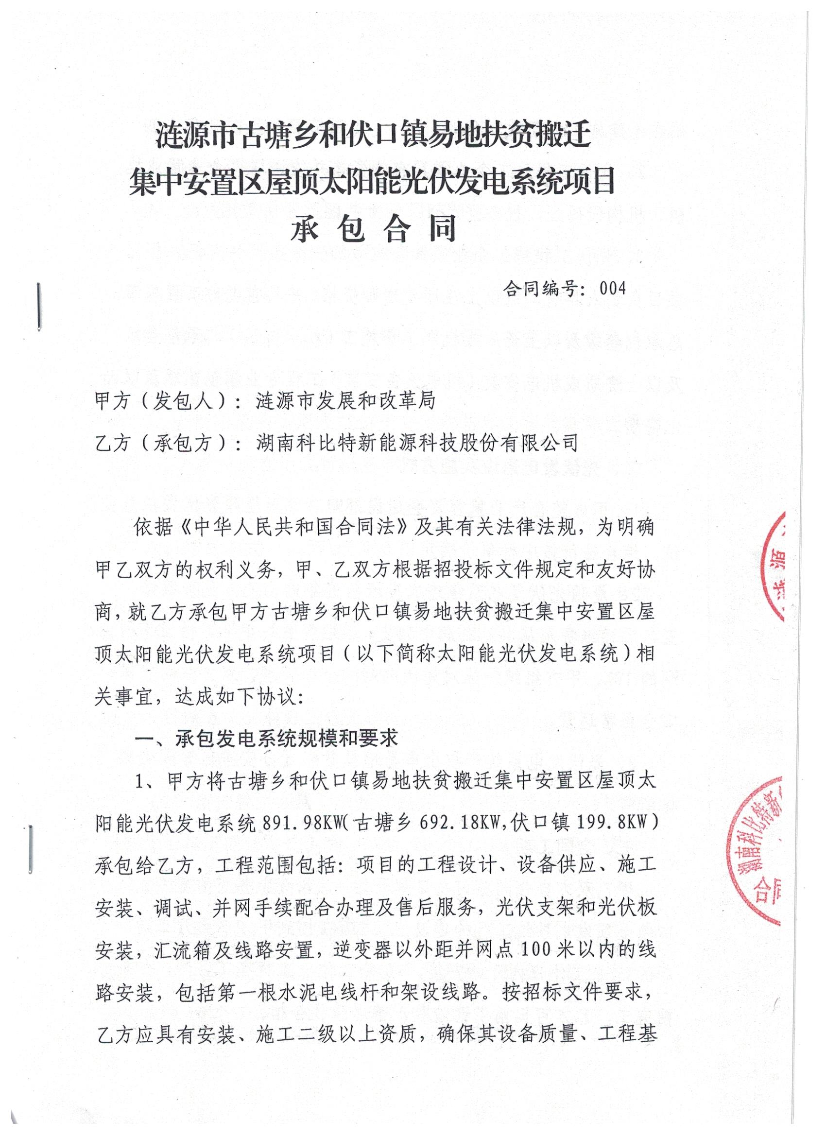 漣源市古塘鄉(xiāng)和伏口鎮(zhèn)易地扶貧搬遷集中安置區(qū)屋頂太陽能光伏發(fā)電系統(tǒng)項(xiàng)目承包合同公示