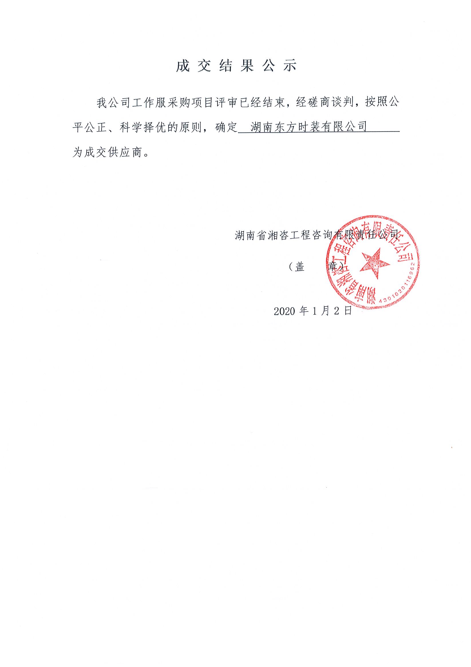湖南省湘咨工程咨詢有限責(zé)任公司工作服采購項(xiàng)目成交結(jié)果公示