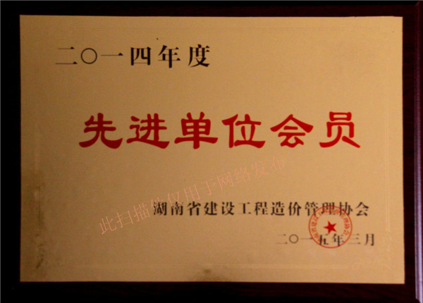 熱烈慶祝我司榮獲湖南省造價工程管理協(xié)會2014年度先進(jìn)單位會員