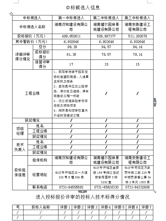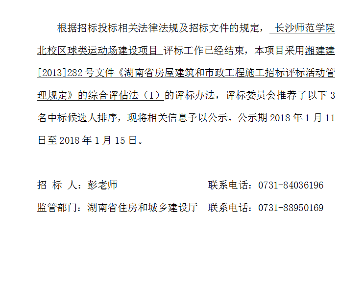 長沙師范學(xué)院北校區(qū)球類運動場建設(shè)項目招標(biāo)投標(biāo)信息公示表