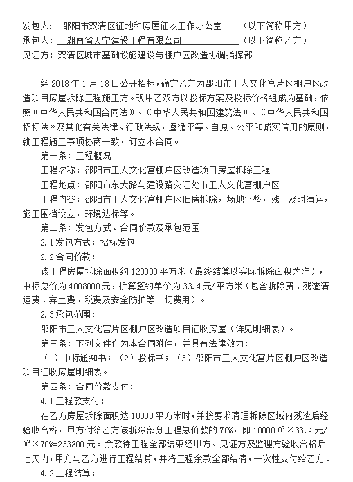 邵陽(yáng)市工人文化宮片區(qū)棚戶區(qū)改造項(xiàng)目房屋拆除工程合同書