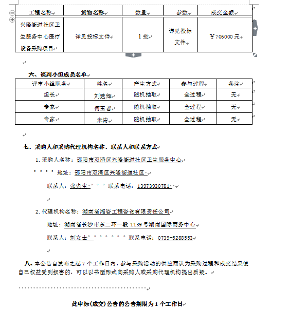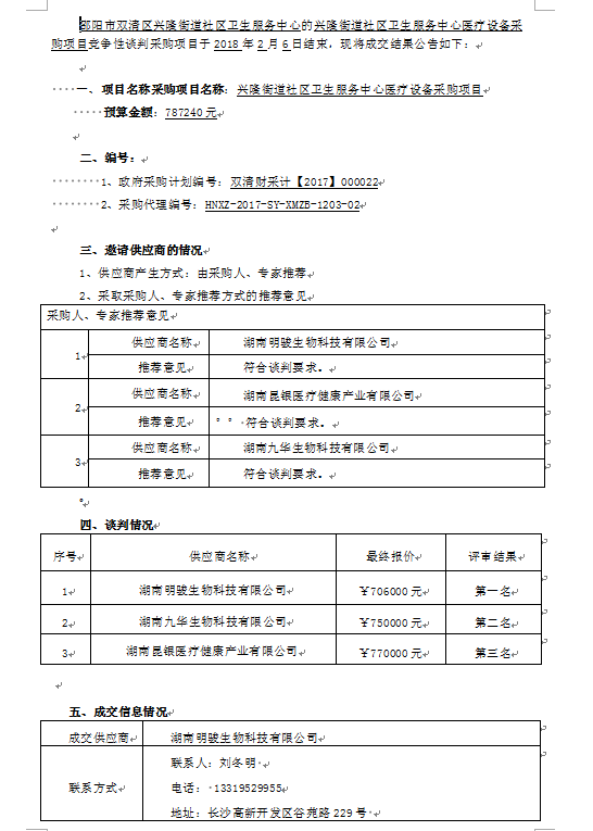 興隆街道社區(qū)衛(wèi)生服務(wù)中心醫(yī)療設(shè)備采購(gòu)項(xiàng)目談判成交公告
