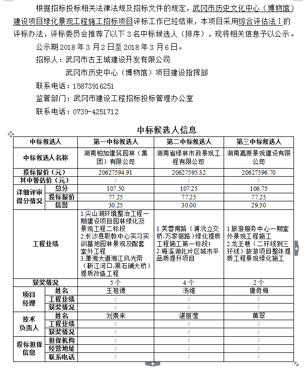 武岡市歷史文化中心(博物館)建設(shè)項(xiàng)目綠化景觀工程施工招標(biāo) 招標(biāo)投標(biāo)信息公示表