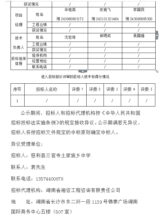 慈利縣三官寺土家族鄉(xiāng)中學(xué)科教樓、教師住房及中心完小科教樓工程施工招標(biāo) 投標(biāo)信息公示表