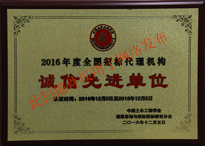 2016年度全國招標(biāo)代理機構(gòu)誠信先進(jìn)單位